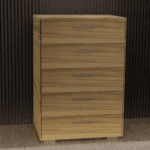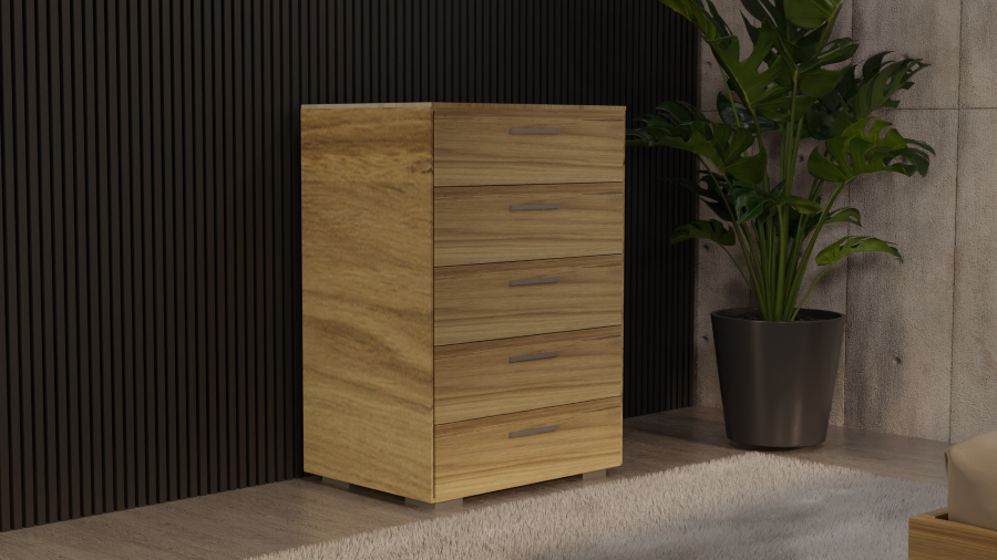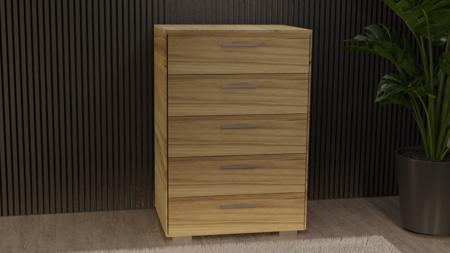 Συρταριέρα ελληνικής προέλευσης, η οποία αποτελείται από 5 συρτάρια με μεταλλικά χερούλια inox. Κατασκευασμένη από πιστοποιημένη μοριοσανίδα υψηλής ποιότητας με επικάλυψη μελαμίνης, είναι ιδανική για χώρους περιορισμένων διαστάσεων καθώς μπορείτε να διακοσμήσετε και να δώσετε μια διαφορετική πνοή στο δωμάτιο.