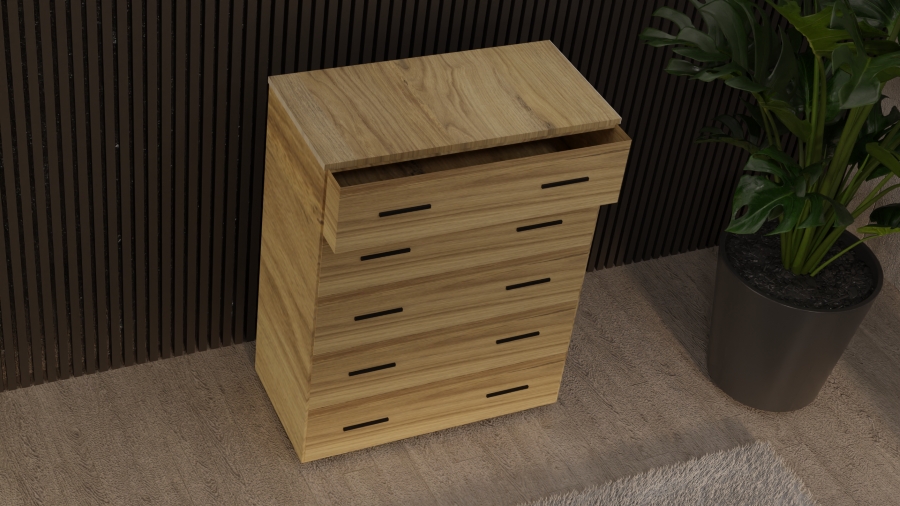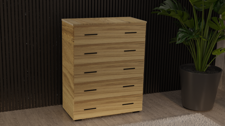 Συρταριέρα ελληνικής κατασκευής, με 5 βαθιά ευρύχωρα συρτάρια και μεταλλικά χερούλια inox υψηλής αντοχής. Κατασκευασμένη από πιστοποιημένη μοριοσανίδα άριστης ποιότητας με επικάλυψη ανθεκτικής μελαμίνης, προσφέρει ανθεκτικότητα και κομψό φινίρισμα. Χάρη στον λειτουργικό και λιτό σχεδιασμό της, αποτελεί ιδανική επιλογή, προσθέτοντας παράλληλα αισθητική και πρακτικότητα στο δωμάτιο.