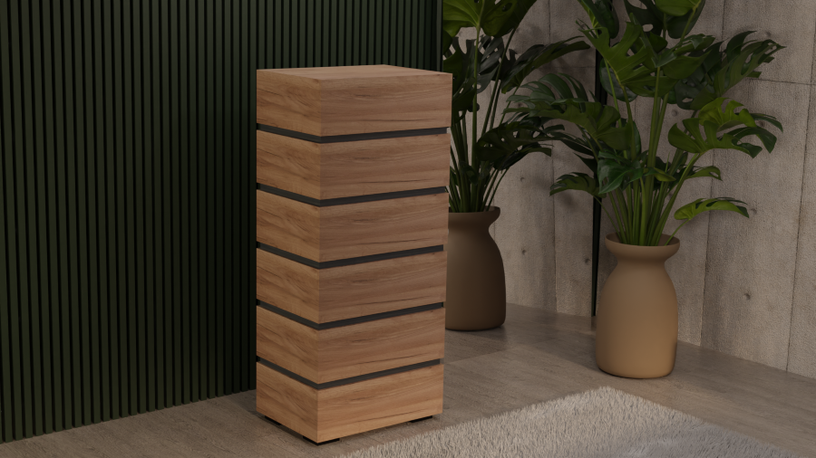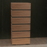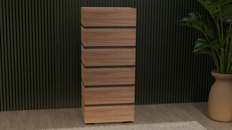 Συρταριέρα ελληνικής κατασκευής που ξεχωρίζει για την ποιότητα και τον μοντέρνο σχεδιασμό της. Διαθέτει 6 ευρύχωρα συρτάρια, προσφέροντας άνεση και πρακτικότητα στην οργάνωση του χώρου σας. Κατασκευασμένη από μελαμίνη ελληνικής ποιότητας, εξασφαλίζει αντοχή, σταθερότητα και κομψό φινίρισμα που διαρκεί στον χρόνο.