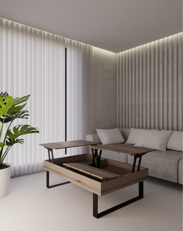 Τραπεζάκι σαλονιού “Smart” ελληνικής προέλευσης, με μοντέρνο και κομψό σχεδιασμό. Διαθέτει μεταλλική βάση σε μαύρη απόχρωση και επιφάνεια από πιστοποιημένη μελαμίνη υψηλής ποιότητας και αντοχής. Μια λειτουργική και στιλάτη επιλογή που αναβαθμίζει κάθε χώρο.