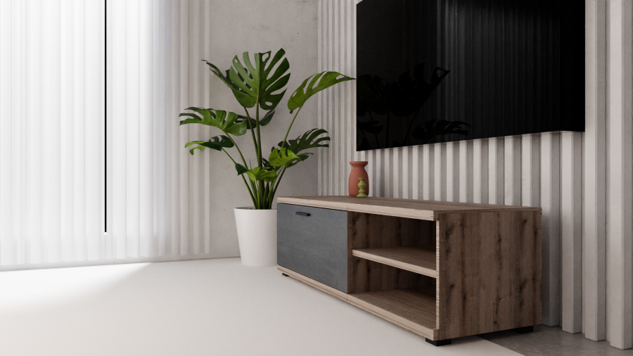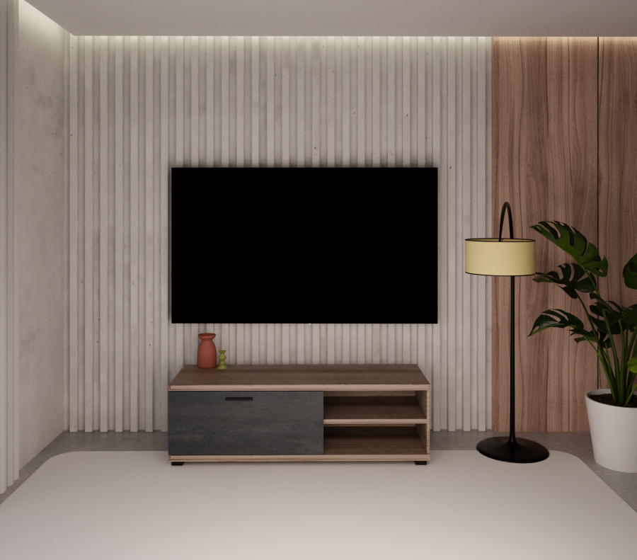 Σύνθετο σαλονιού eco-802 120x39x36 σε χρώμα σταχτί-μαύρη πέτρα.