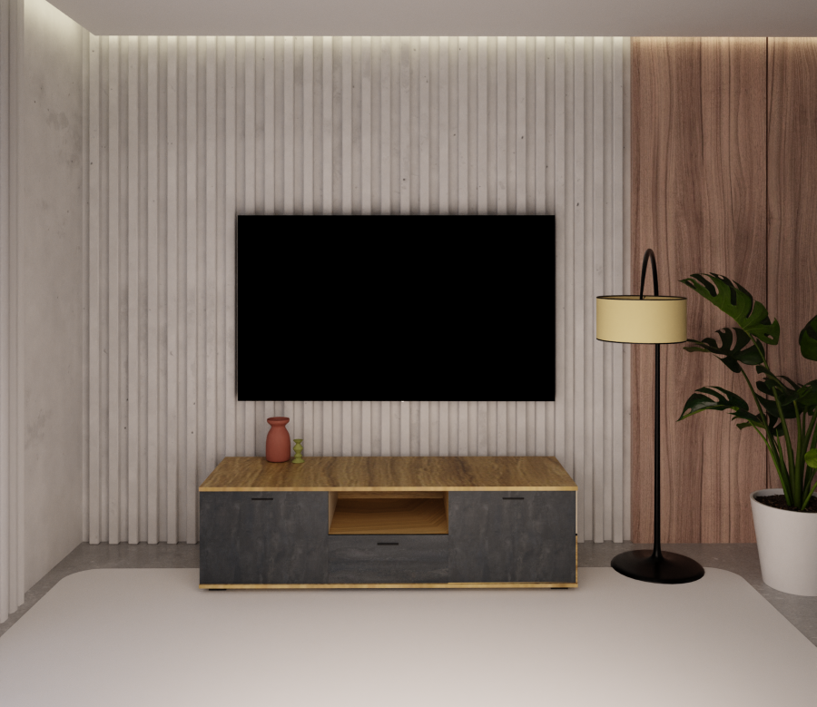 Με πρακτικούς αποθηκευτικούς χώρους και καθαρές γραμμές, αποτελεί μια ιδανική επιλογή για κάθε σύγχρονο σαλόνι, χαρίζοντας στυλ και λειτουργικότητα στον χώρο.