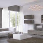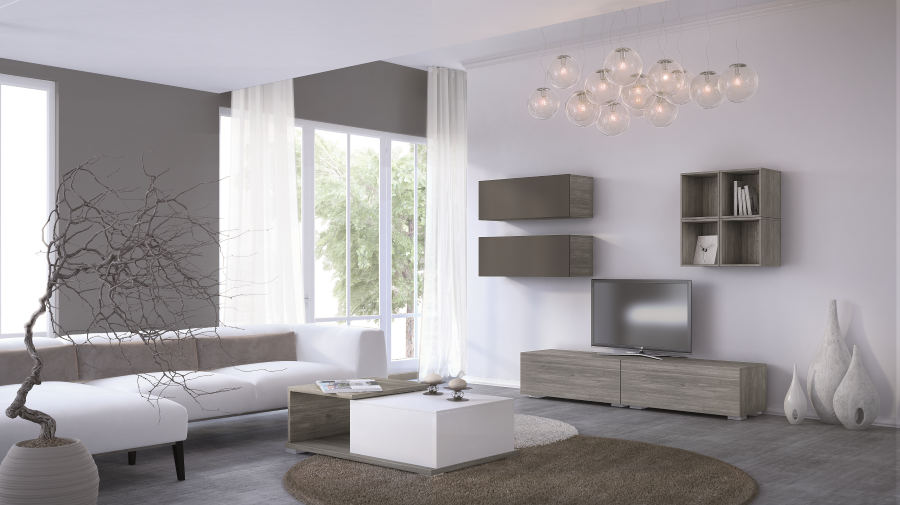 Μοντέρνα σύνθεση TV σε αποχρώσεις σταχτί και γκρι λάκα.